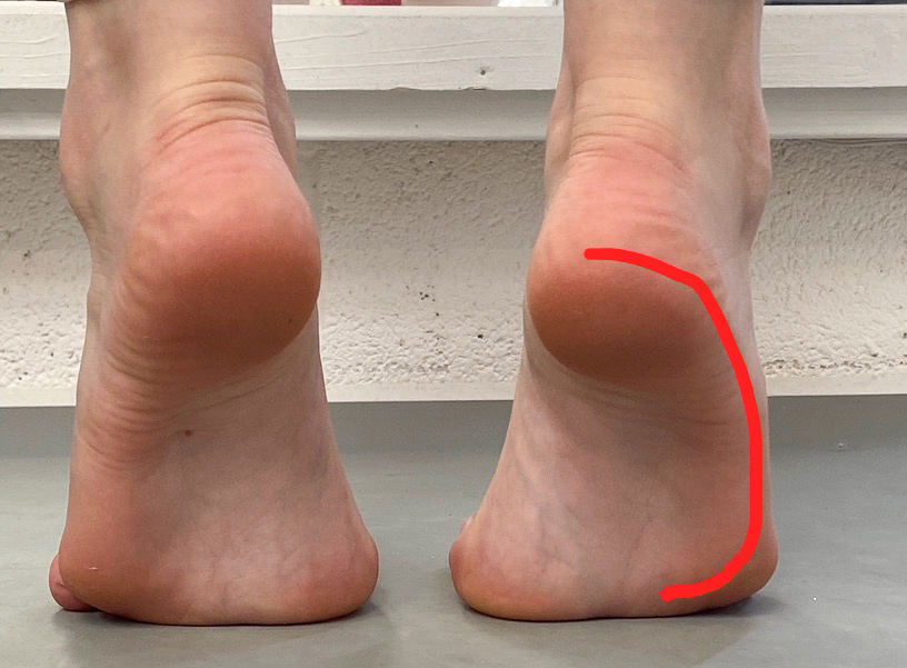 C Shaped Heel – This regularly goes hand in hand with Mobility and the Big Toe but unfortunately our anatomy sometimes doesn’t work in our favour. A C shaped heel will cause the shank to swivel in almost every scenario. To check for a C shaped heel, rise on to demi pointe in parallel and check the position of the heel. If the heel (and only the heel) turns inwards this is a C shaped heel. If you were to trace a line from the little toe joint round to the heel you will see it forms a C shape. In this case a softer shank is more likely to mould to the shape of the foot and you may need to sacrifice shoe longevity for safety and comfort.